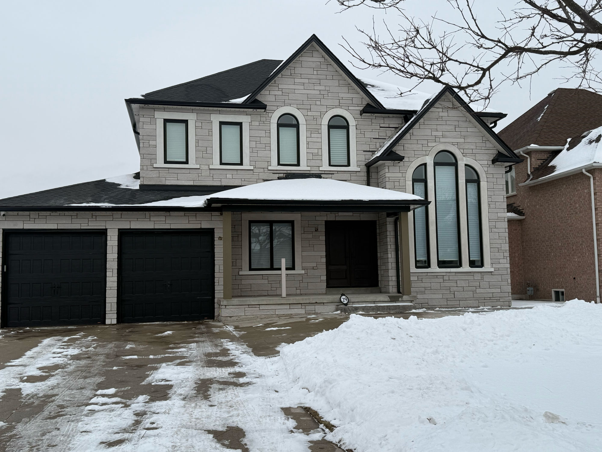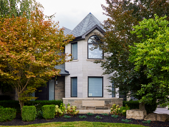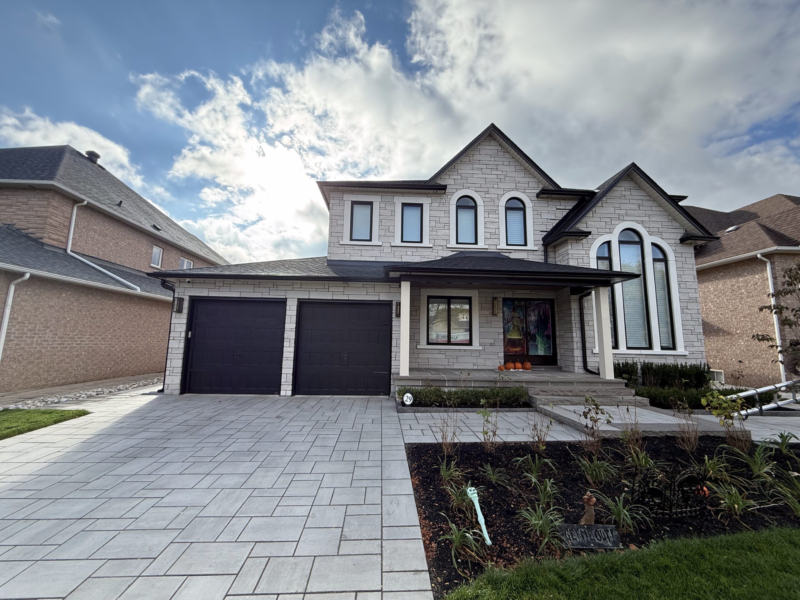 This custom exterior upgrade in Nobleton features stonework and stucco finishing, creating a timeless façade...