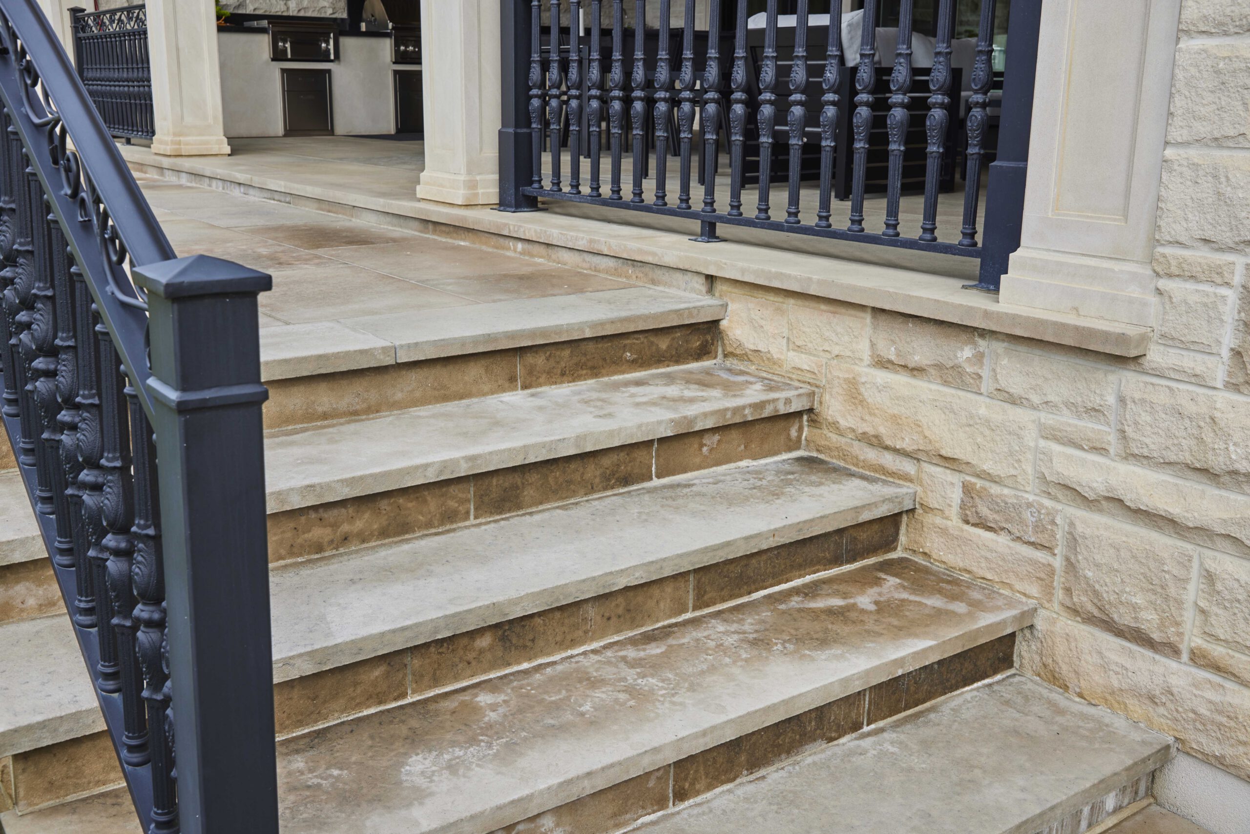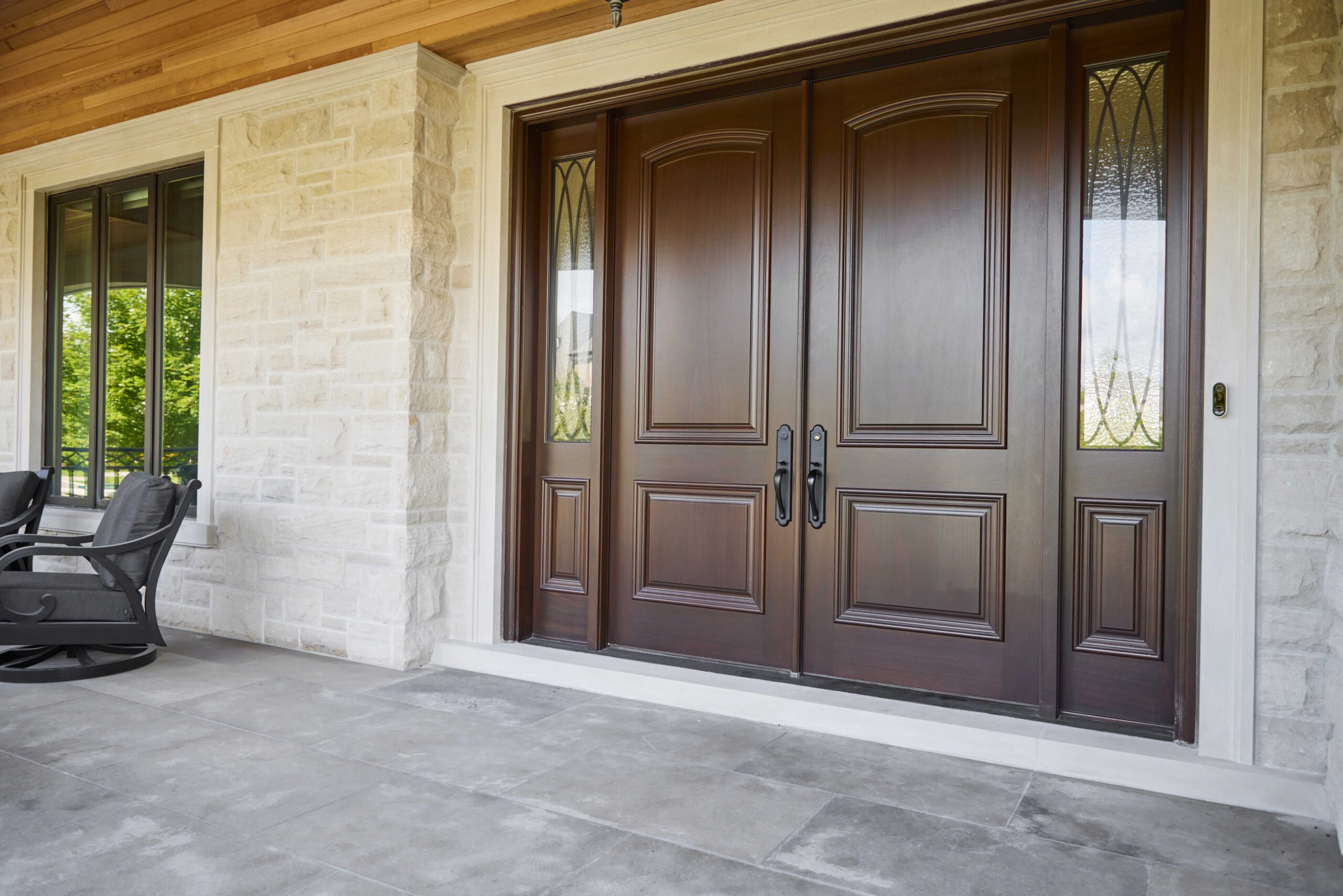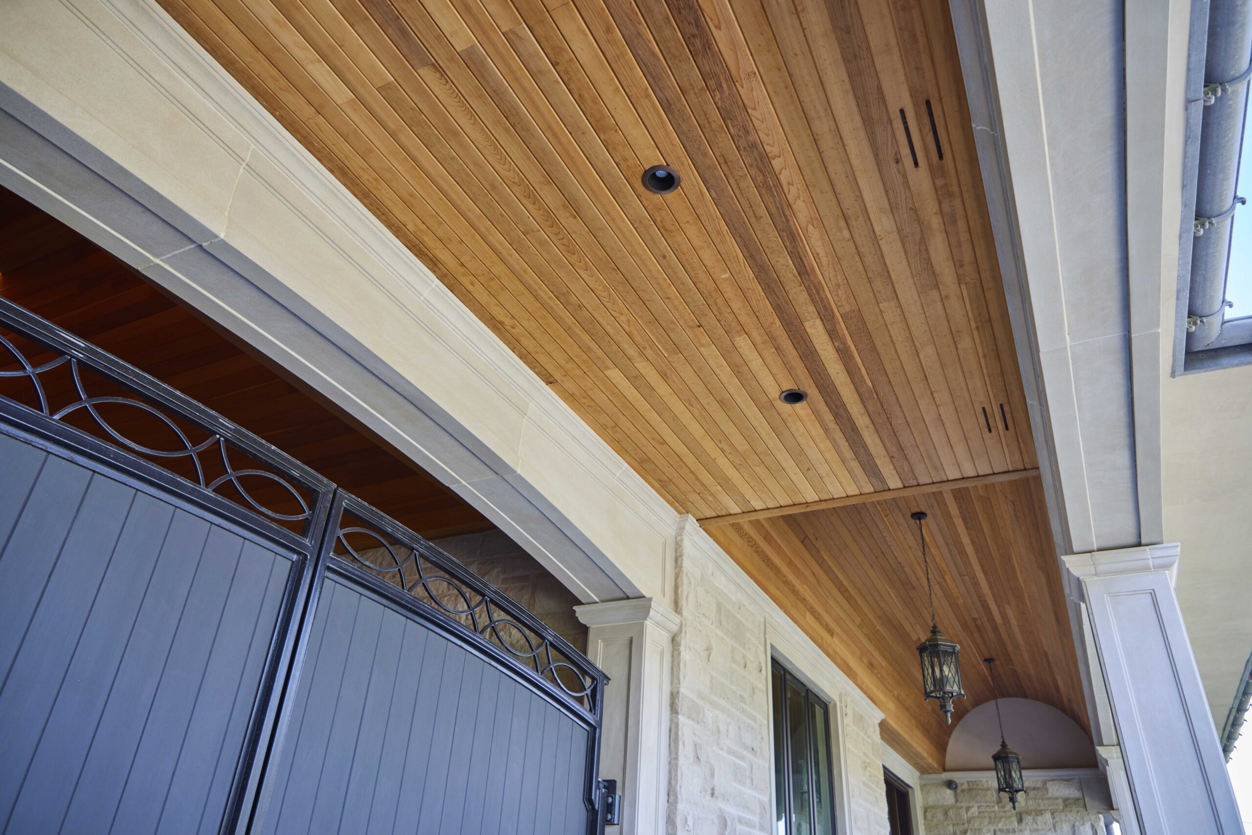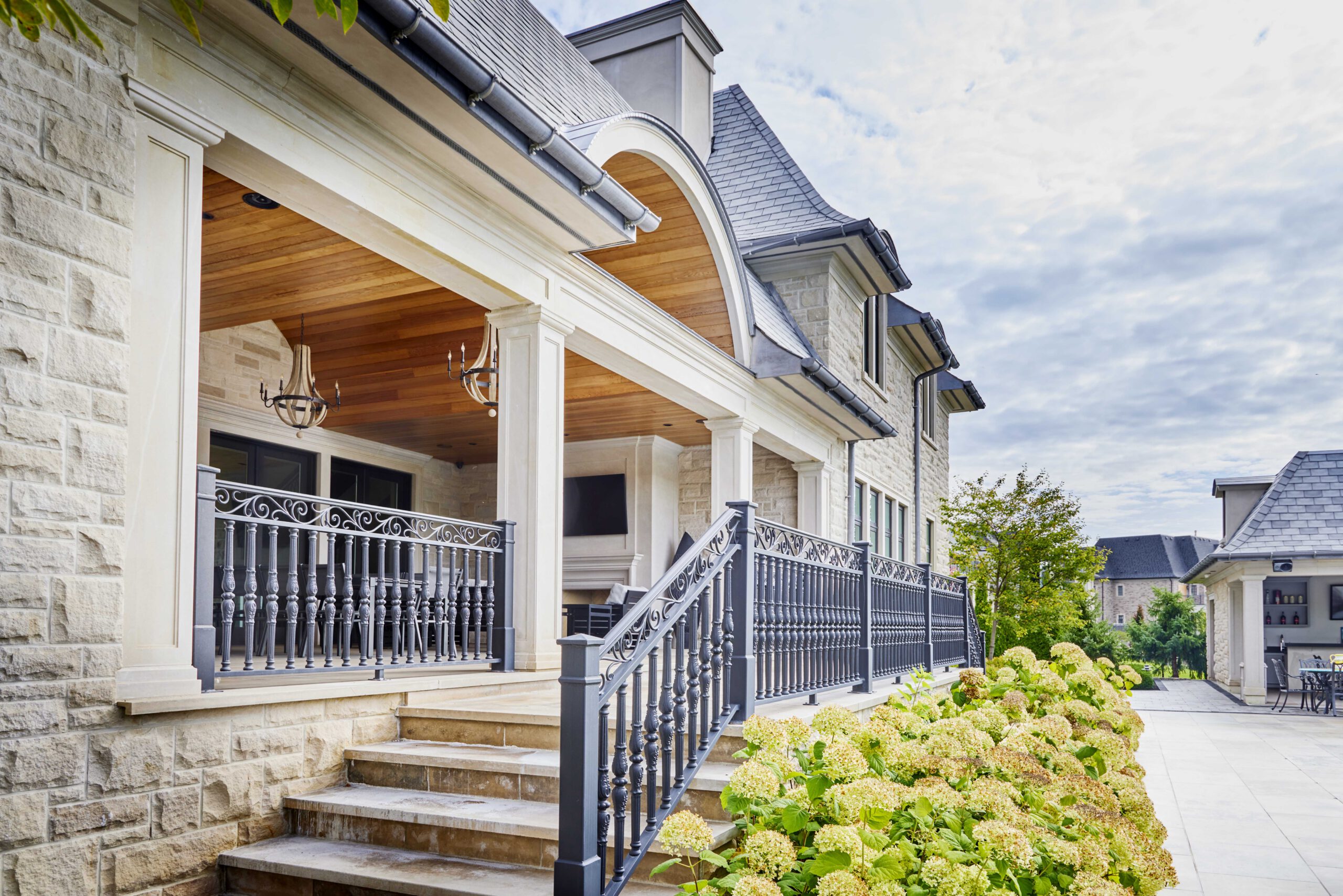This exterior transformation in Woodbridge blends texture and tone for a refreshed modern look. Featuring new stonework, smooth stucco surfaces, and a rebuilt porch ceiling with wood-style soffits, the upgrades enhance both curb appeal and durability while keeping the home’s original structure intact.